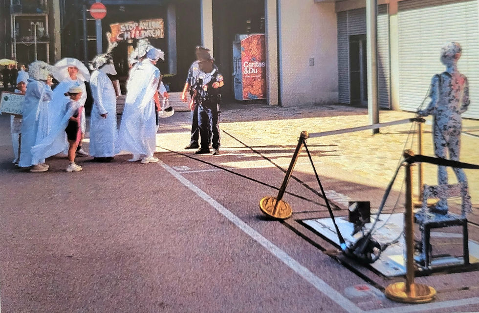 Besonders sensibel wurde diese Situation durch die Beteiligung von Kindern. Für viele von ihnen bedeutete die plötzliche Konfrontation mit der Polizei eine reale Angst- und Stresssituation. Hier zeigt sich eine zentrale Herausforderung für zukünftige Projekte: die Balance zwischen künstlerischer Freiheit, humanistischer sowie politischer Aussagekraft und der Verantwortung für Sicherheit. Die bisherigen Erfahrungen legen nahe, dass Rahmenbedingungen klarer definiert und abgestimmt werden müssen – nicht als Einschränkung der Kunst, sondern als Voraussetzung dafür, dass sie verantwortungsvoll stattfinden kann.